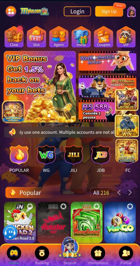 After spending some time using 777plus Game, I found the experience quite interesting. The first thing I noticed was the simple design of the app. Everything feels easy to find, whether you want to check your balance, open a game, or see available bonuses.