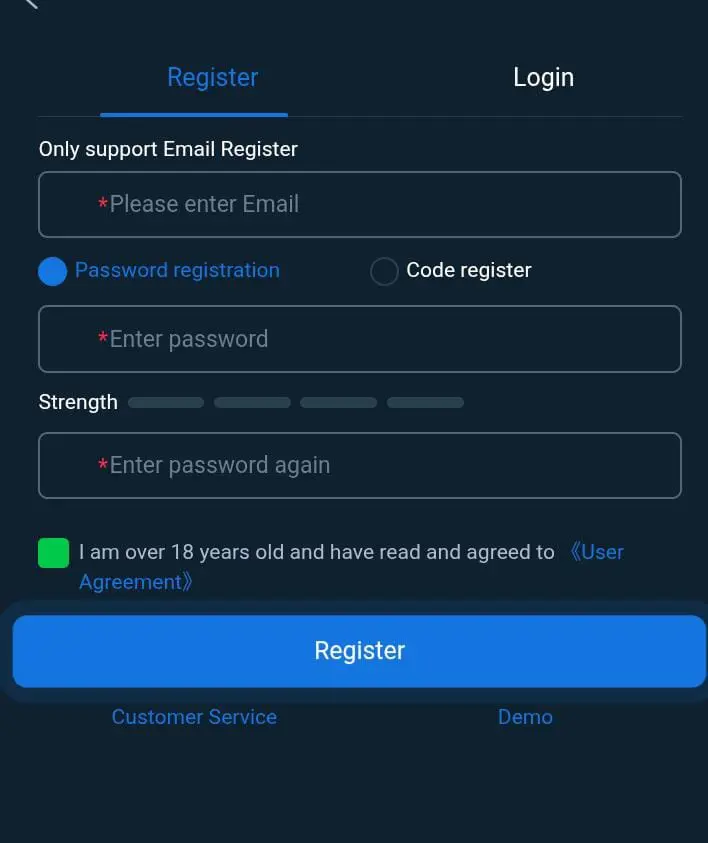 Open the app and tap on the Register button. Enter your active mobile number correctly to begin the process. After submitting your number, you will receive an OTP code through SMS for verification. Enter that code to confirm your account.